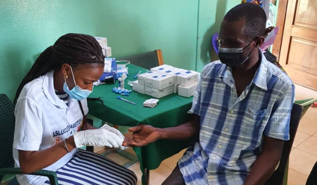Nous venons en aide aux personnes atteintes du diabÚte n'ayant pas de ressources nécessaires pour se soigner. Nos actions: sensibilisation, prévention et dépistage afin de diminuer le taux imputation et de mortalité en particulier chez les femmes et les enfants. Prise en charge des malades et leurs donner accÚs aux soins de base. Fournir de médicaments et matériel de soins adéquats et gratuits pour le traitement. Hébergement des enfants aprÚs l'hospitalisation afin de les accompagner dans leur traitement. Visite à HÎpital et a domicile des personnes imputées. Suivi et accompagnement des malades. Formation de personnes médical donner par les spécialiste des HUG en Guinée-Bissau.