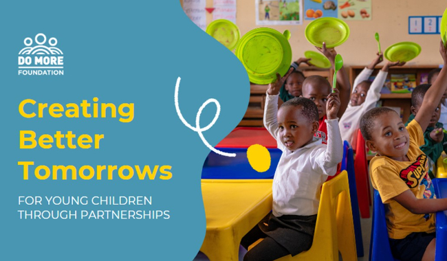The DO MORE FOUNDATION ignites collaboration to sustainably support the well-being of young children in under-served communities in South Africa. Through our national initiatives, we invite mission-aligned supporters to join us in delivering nutritious porridge, quality early learning resources and a one-of-kind parenting programme across the country. In our intensive community support initiatives, we bring together different spheres of government, non-profit organisations, academic institutions, businesses and local champions of change, to co-create environments that enable young children to flourish.