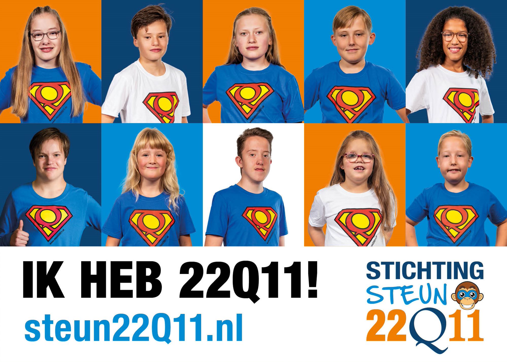 Stichting Steun 22Q11 heeft als doel bekendheid te genereren voor kinderen met het 22Q11 syndroom. Het relatief onbekende syndroom is het op één na grootste syndroom dat Nederland "kent" en eigenlijk niet kent. 1:2000 kinderen wordt hiermee geboren. De Stichting zet zich in zodat ziekenhuizen, artsen, scholen, omgeving en ouders geen lange zoektocht meer hebben. Het syndroom heeft 190 verschillende kenmerken, waarvan veel kinderen 20-30 verschillende kenmerken hebben. Door de bekendheid en herkenning willen we zorgen dat er sneller een diagnose komt. Sneller de juiste hulp en geen verkeerde operaties. Daarnaast werken we nauw samen met het UMC / WKZ in Utrecht waar het expertise centrum voor het 22Q11 deletie syndroom zit, 's Heerenloo en het MUMC De waarden waar de stichting voor staat zijn: - Erkenning; - Mogelijkheden door samenwerken; - Eenheid en doelgericht - Aandacht en verbondenheid Zonder daarbij het welzijn van de ouders en het kind uit het oog te verliezen.