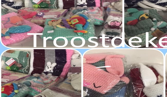Wij zijn het troostdekentje. Wij haken en breien belangeloos dekentjes voor zieke kinderen of kinderen die niet vol van hun jeugd kunnen genieten. Veel van deze kinderen komen al vroeg in aanraking met het ziekenhuis. Ook broertjes en zusjes van deze kinderen komen we wat troost brengen, zij krijgen een knuffel of zorgenvriendje. Voor ieder gezin wordt er een mooi pakket samengesteld. De dekens bieden troost en een houvast in de vreemde ziekenhuisomgeving. De troostpakketjes worden naar de ontvangers verzonden. Dit willen we kosteloos voor de ontvangers kunnen doen maar daarvoor hebben wij wel sponsoring nodig.