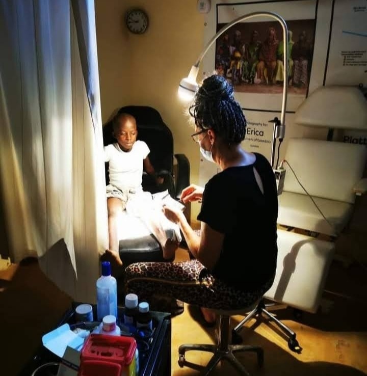Erica van Dijk en Foday Drammeh runnen een non profit medische hulppost in een arm gebied in Gambia. Er is hier geen goede medische hulp beschikbaar..We werken hier als spoedeisendehulp verpleegkundige en leveren wondzorg,malariatesten en andere bloedtesten.We meten de vitale functies van patiënten en verkopen medicatie tegen een kleine prijs en vaak ook gratis.. We sponsoren 40 kinderen om naar school te kunnen of om medische redenen..We geven gratis medische hulp aan 40 kinderen van de Arabische scholen in Bafuloto.