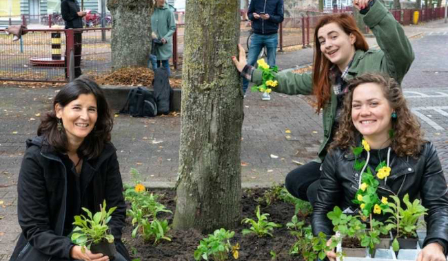 Met guerrilla gardening verover jij de grijze openbare ruimte en maak je er een groene oase van. Guerrilla gardeners wippen stoeptegels voor geveltuinen, beplanten de kale grond rond bomen en zetten bloemen tussen de standaard struiken in het gemeenteperk. Met een bloemen-explosie in jouw plaats of buurt, geef jij de biodiversiteit een flinke boost. Dat levert levende straten vol vogels, vlinders en bijen. Stichting Guerrilla Gardeners helpt je om aan de slag te gaan. Dus hup! Naar het front en aan de slag!